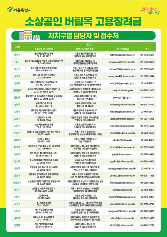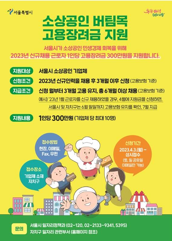 서울시가 소상공인 소기업 근로자의 고용을 유지할수있도록 총 107억 원을 투입하기로 했다. 서울지역 소상공인 종사자는 전국의 약 1/5 수준이나, 경기침체, 폐업등으로 서울지역 소상공인 종사자 감소폭이 큰 실정을 감안해서 지원대책을 마련했다. 그러면 어떤 사업이 있는지 알아보자